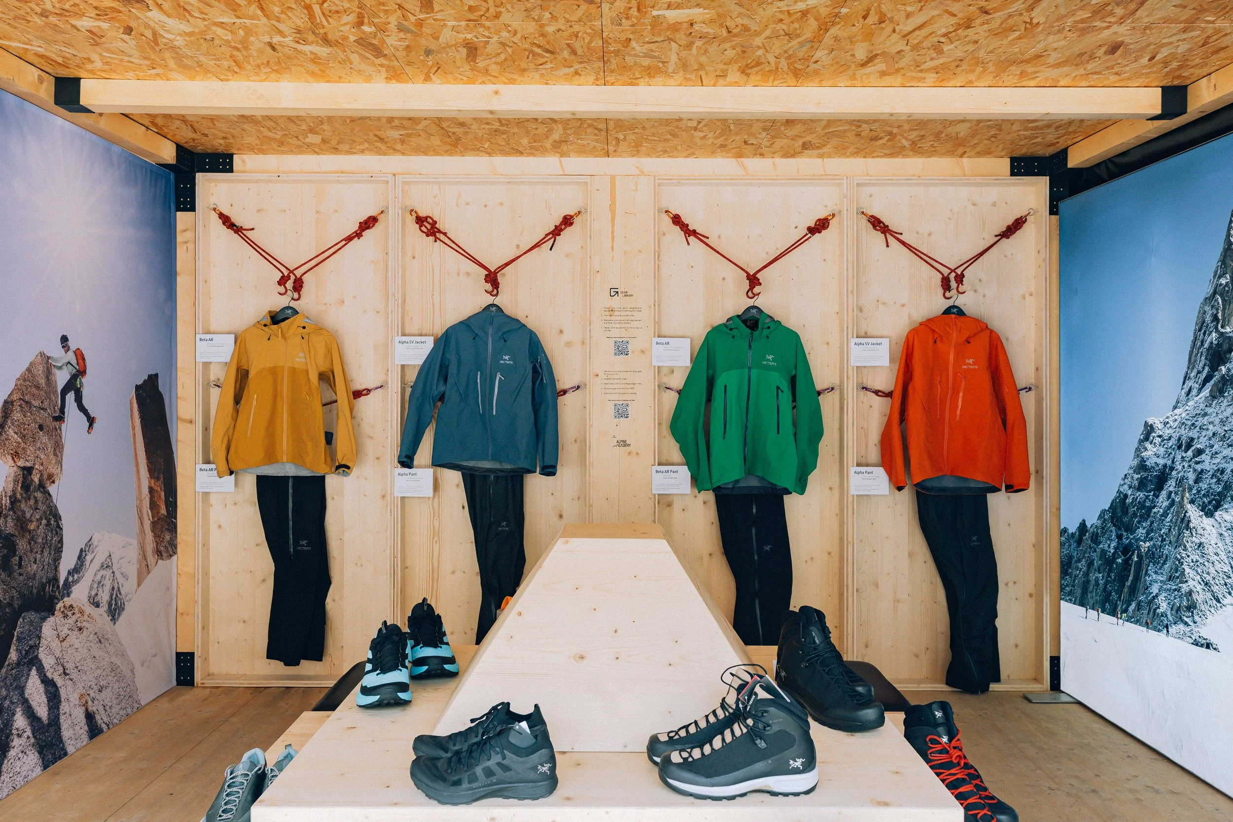 Une fois les rendus 3D validés par la marque, il a été temps de rendre vivant cette structure dans le monde réel, au ARC’TERYX Alpine Academy 2023. Le résultat en images ci-dessous, photographié par moi-même, vous laissant découvrir la proximité des réalisations 3D et de la réalité de l’évènement.